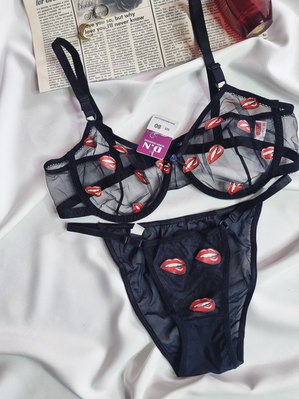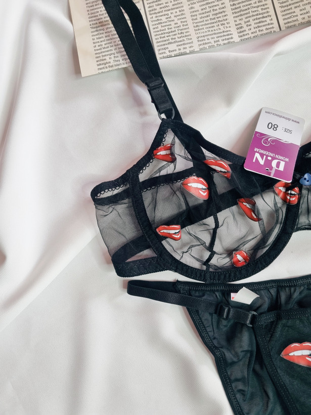 ست شورت و سوتین زنانه تورگاز طرح لب برند D.N