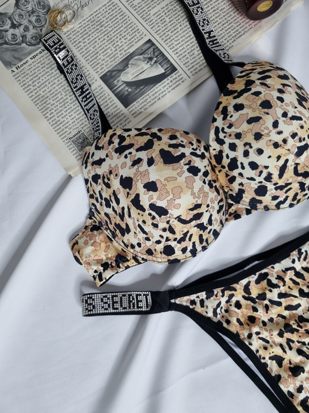 ست شورت و سوتین پلنگی ویکتوریا بند نگین پرسی