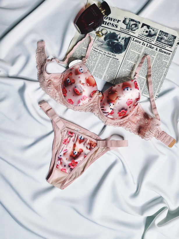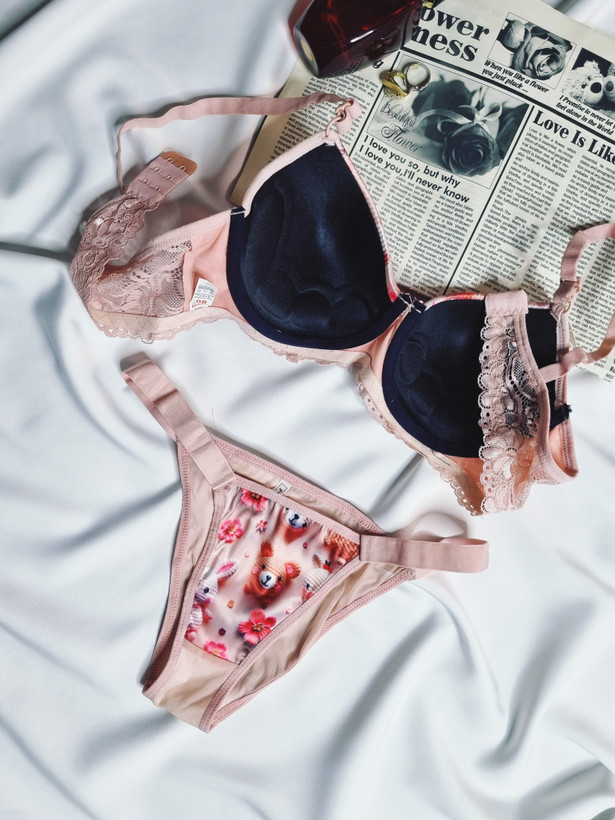 جنس کاپ ساتن و دسته های سوتین گیپور کار شده