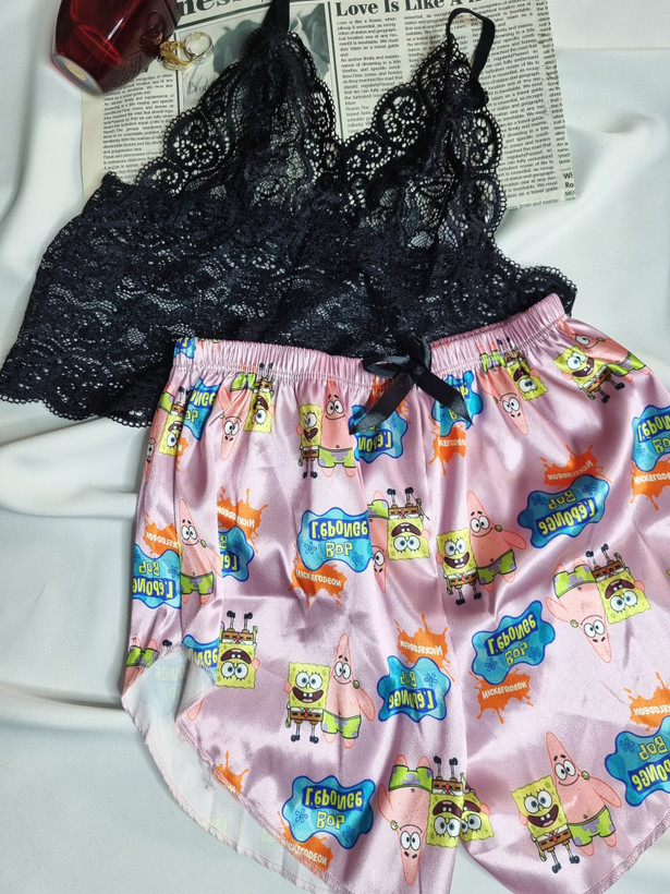 ست لباس خواب تاپ و شلوارک مدل باب اسفنجی